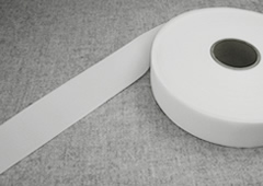 接着テープは「伸び止めテープ」ともいわれますが、伸びを止める、生地に追従する、滑脱防止や補強など使用目的や用途に合わせて、様々な種類があります。それぞれの目的・用途に適したテープを使用することで、製品の仕上がりや品質をも支えることになる、隠れた重要なアイテムなのです。